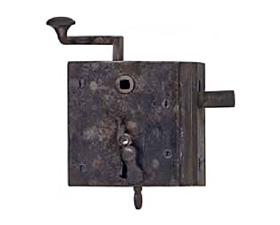 They differ from the previous type only in that the latch protrudes into the strike plate. The locks described above are used because doors used to be 20-32 cm thick and the mortice locks commonly used today cannot be fitted into such doors.